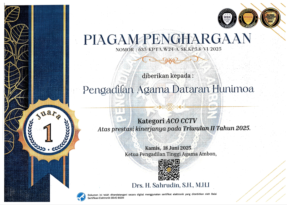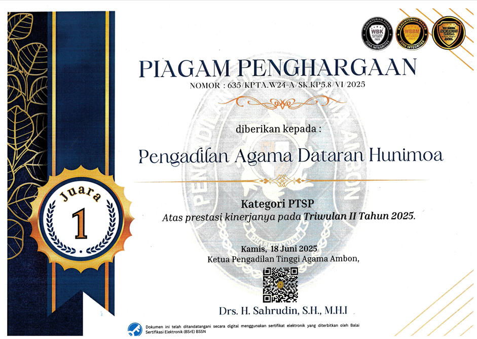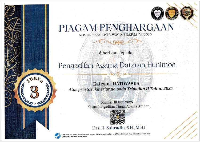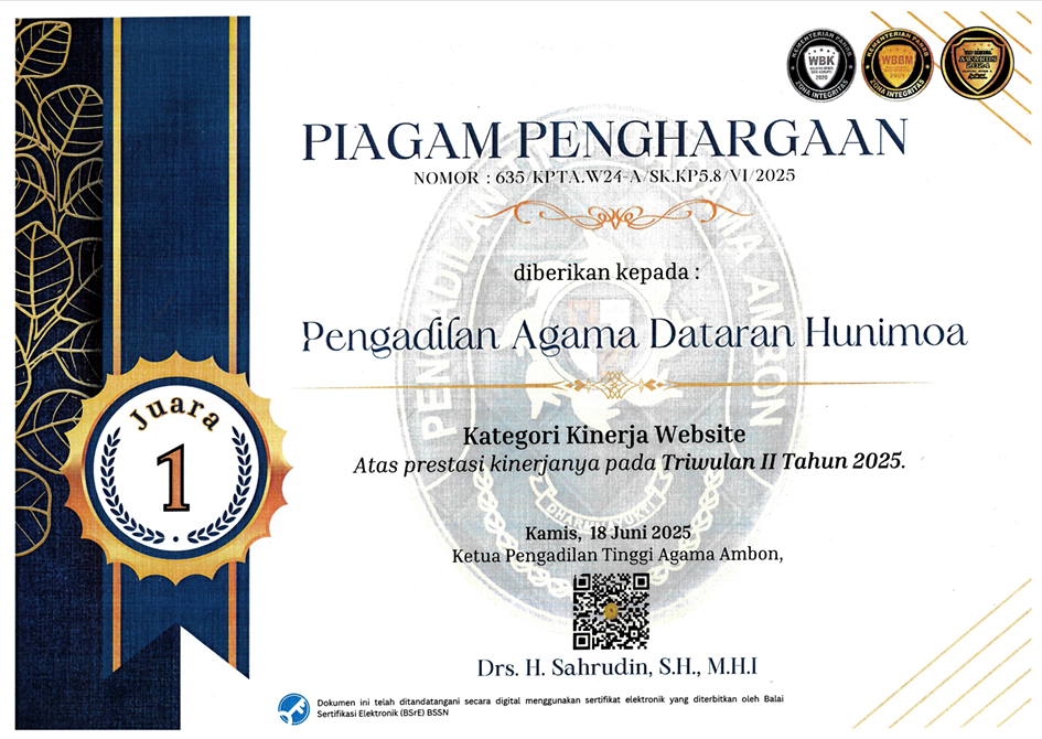 Selamat datang di situs resmi Pengadilan Agama Dataran Hunimoa.