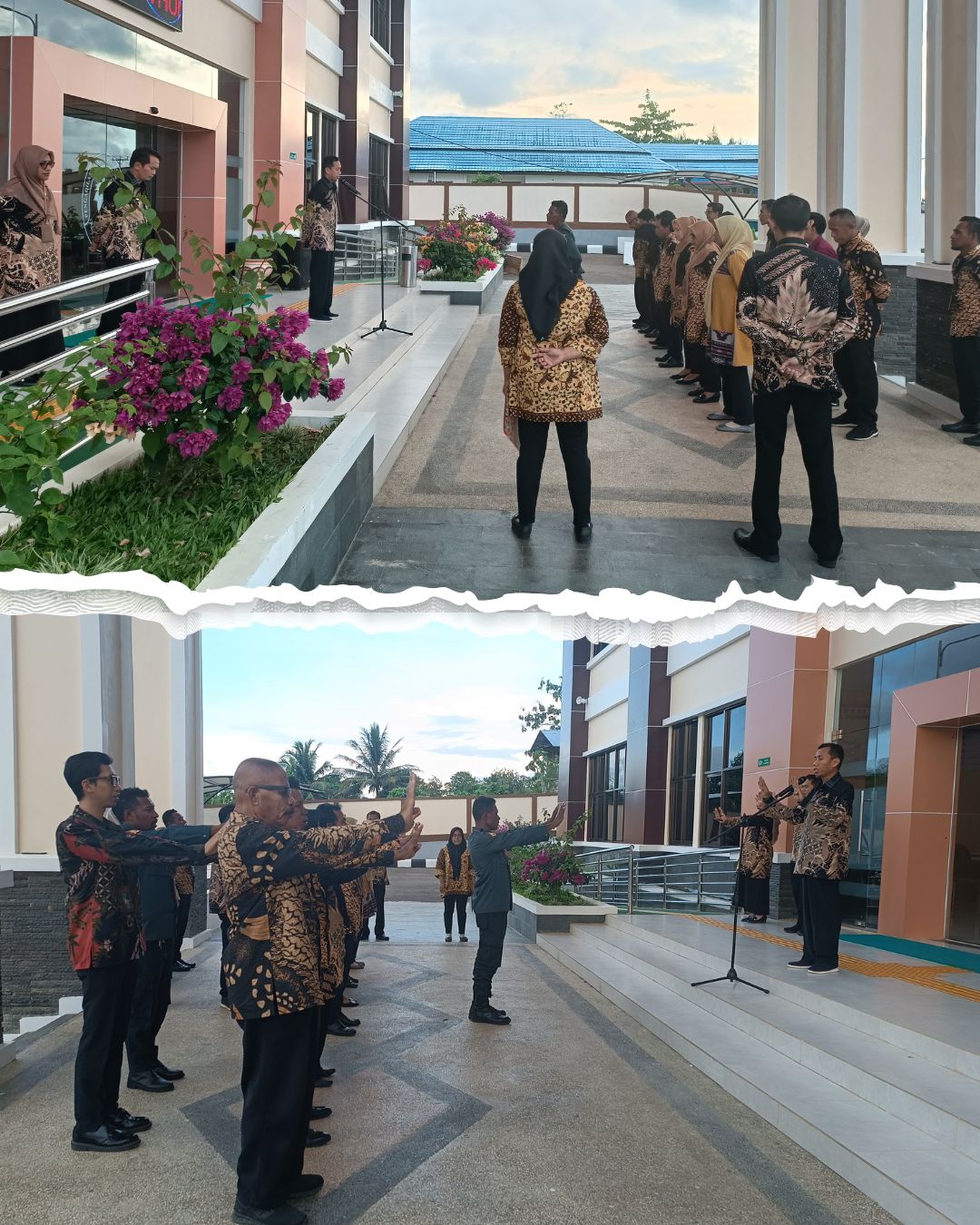 Seram Bagian Timur, 23 Mei 2025 seluruh aparatur Pengadilan Agama Dataran Hunimoa mengikuti apel jumat sore di halaman kantor. Wakil Ketua Bapak Alamsyah, S.H.I., M.H, selaku pembina pada kesempatan kali ini menyampaikan terkait hasil temuan hakim tinggi pengawas daerah mohon untuk segera ditindak lanjuti sampai dengan akhir bulan mei agar bisa menjadi nilai tambah di penilaian triwulan II.