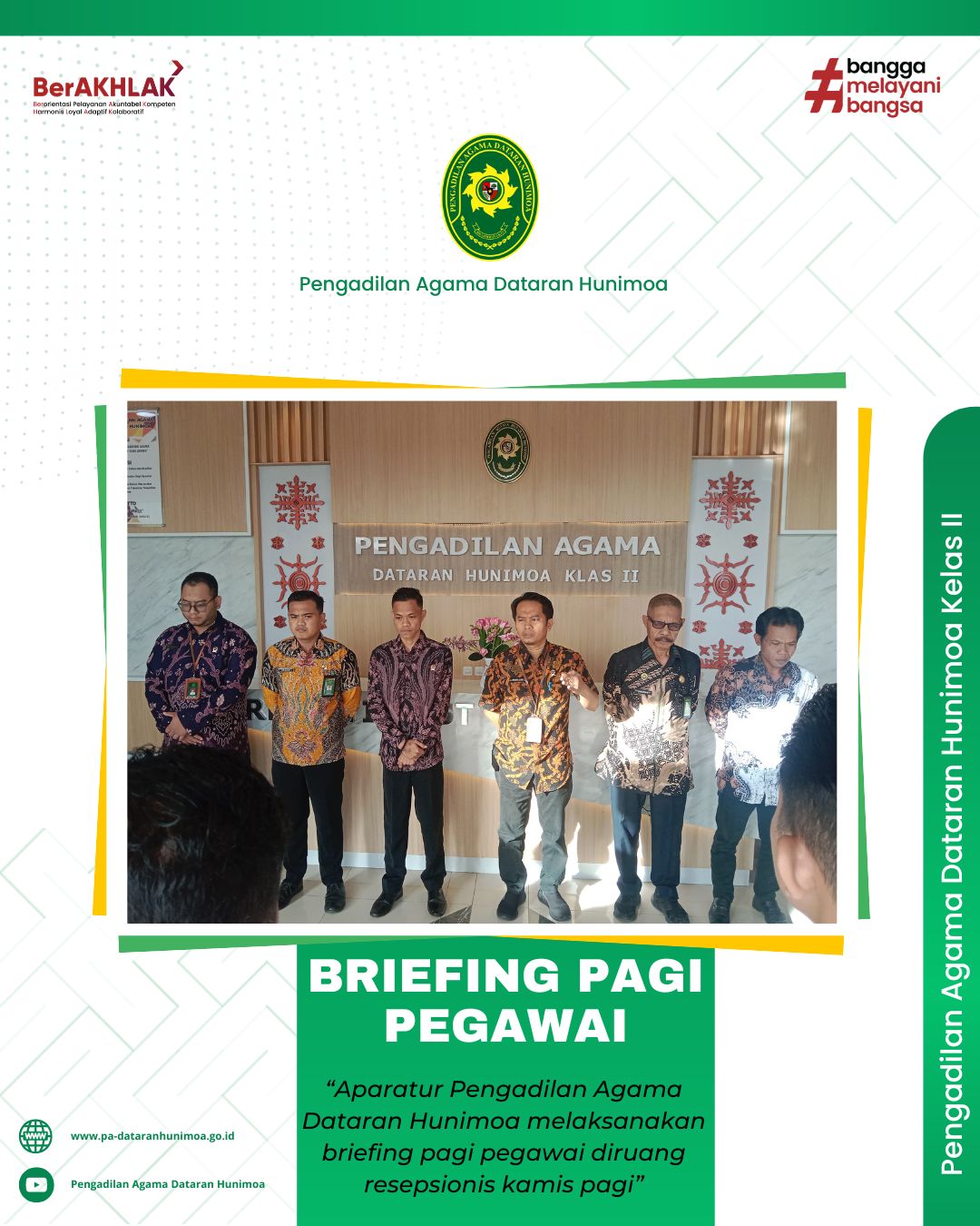 Seram Bagian Timur, 10 Juli 2025 bertempat diruang resepsionis kantor Pengadilan Agama Dataran Hunimoa aparatur Pengadilan Agama Dataran Hunimoa melaksanakan briefing pagi.